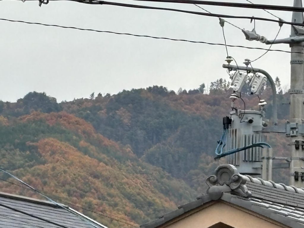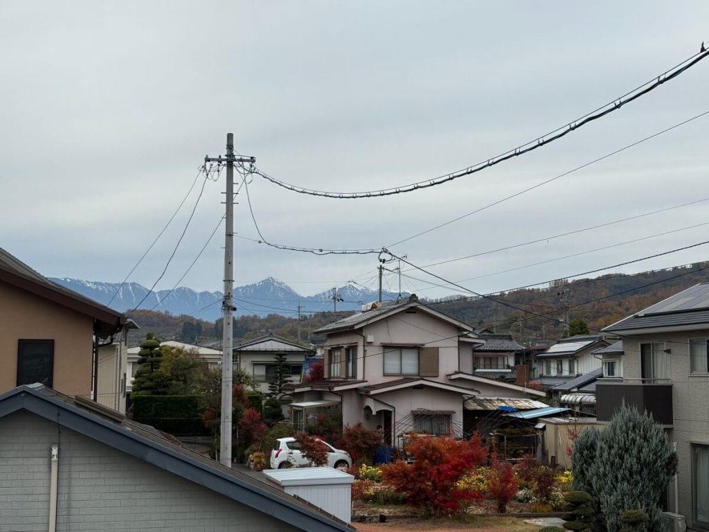 西の部屋からは、雪の積もった北アルプスと紅葉