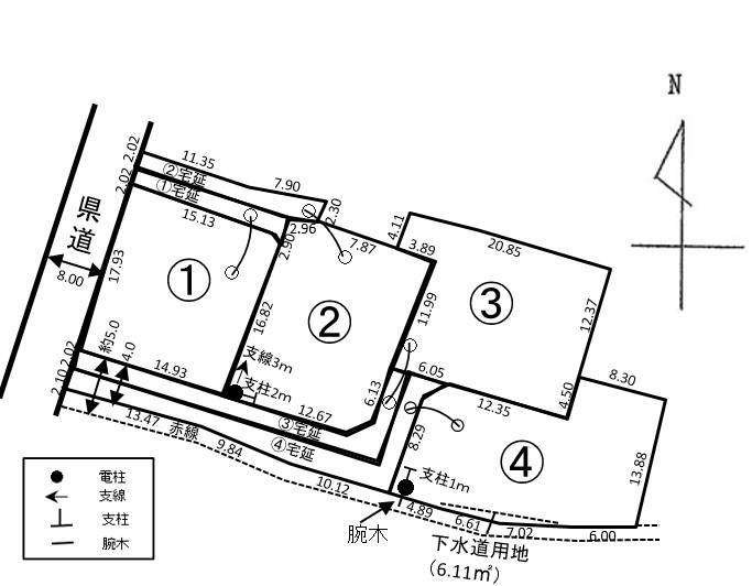 ■別途費用 上水負担金31,400円、下水負担金 各区画でご確認ください。 通行地役権60,000円、管布設地役権50,000円、河川占用料 各区画でご確認ください。■区画①②③④の建築確認申請はそれぞれの宅延①②③④で取るものとする。又、宅延部分の維持管理は所有者及び使用者が行うものとする。■都市計画 市街化調整区域(区域指定区域内)■他の法令上の制限 河川占用者変更許可 43条許可(宅内浸透漕は買主負担)