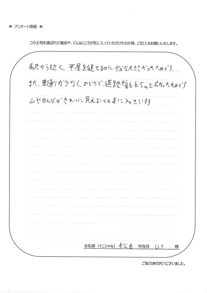 駅から近く、平屋を建てるのに十分な大きさだったためです。
